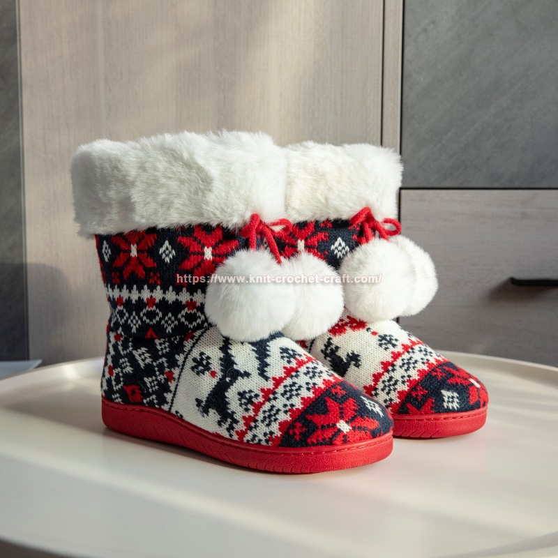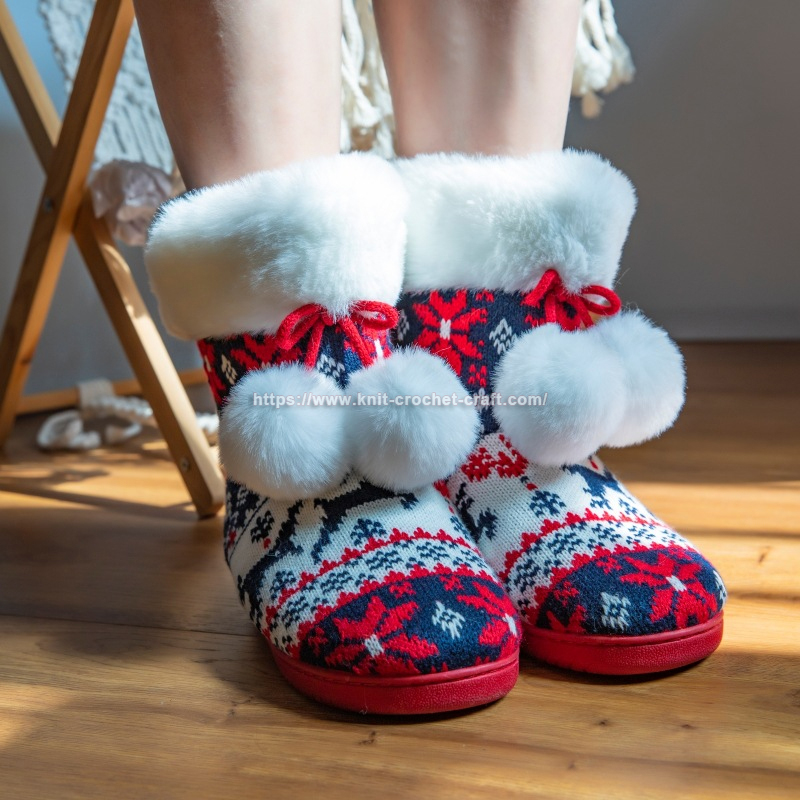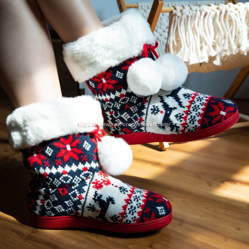 Winter’s chill, meet your match—Christmas high-top slippers, warm and snatch. Knitted love, soft soles, and playful flair, home’s coziness, beyond compare.